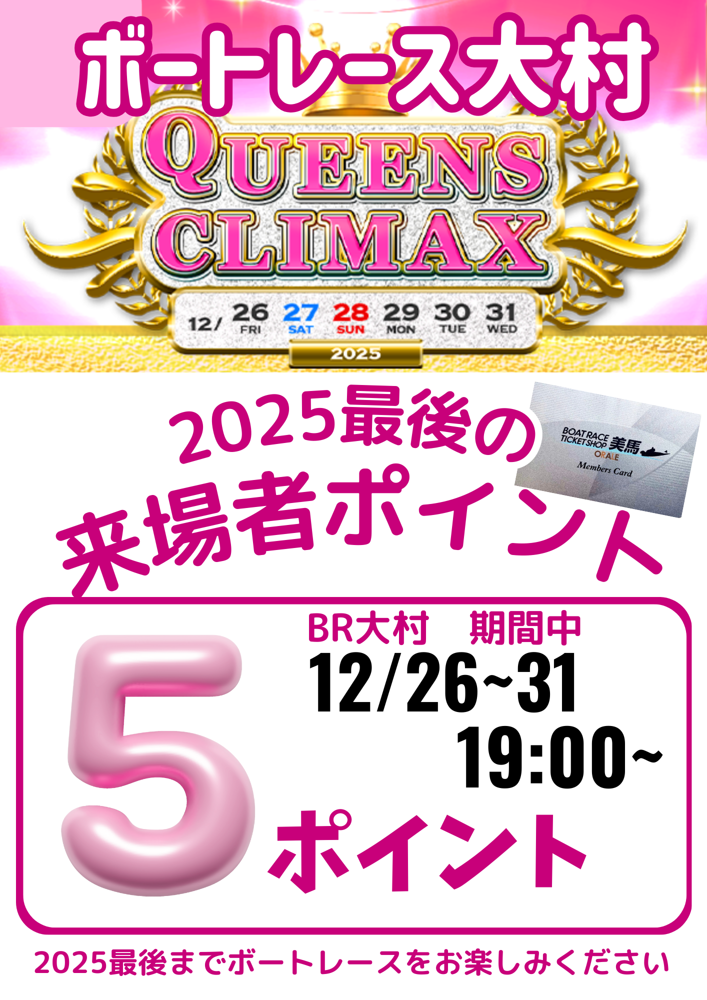 | 下関 GⅢ | 若松ミッドナイト | 大村 GⅠ海の王者決定戦 | 下関ミッドナイト | 大村ミッドナイト | 丸亀 | 下関 | |||||||||||||||||||||||||