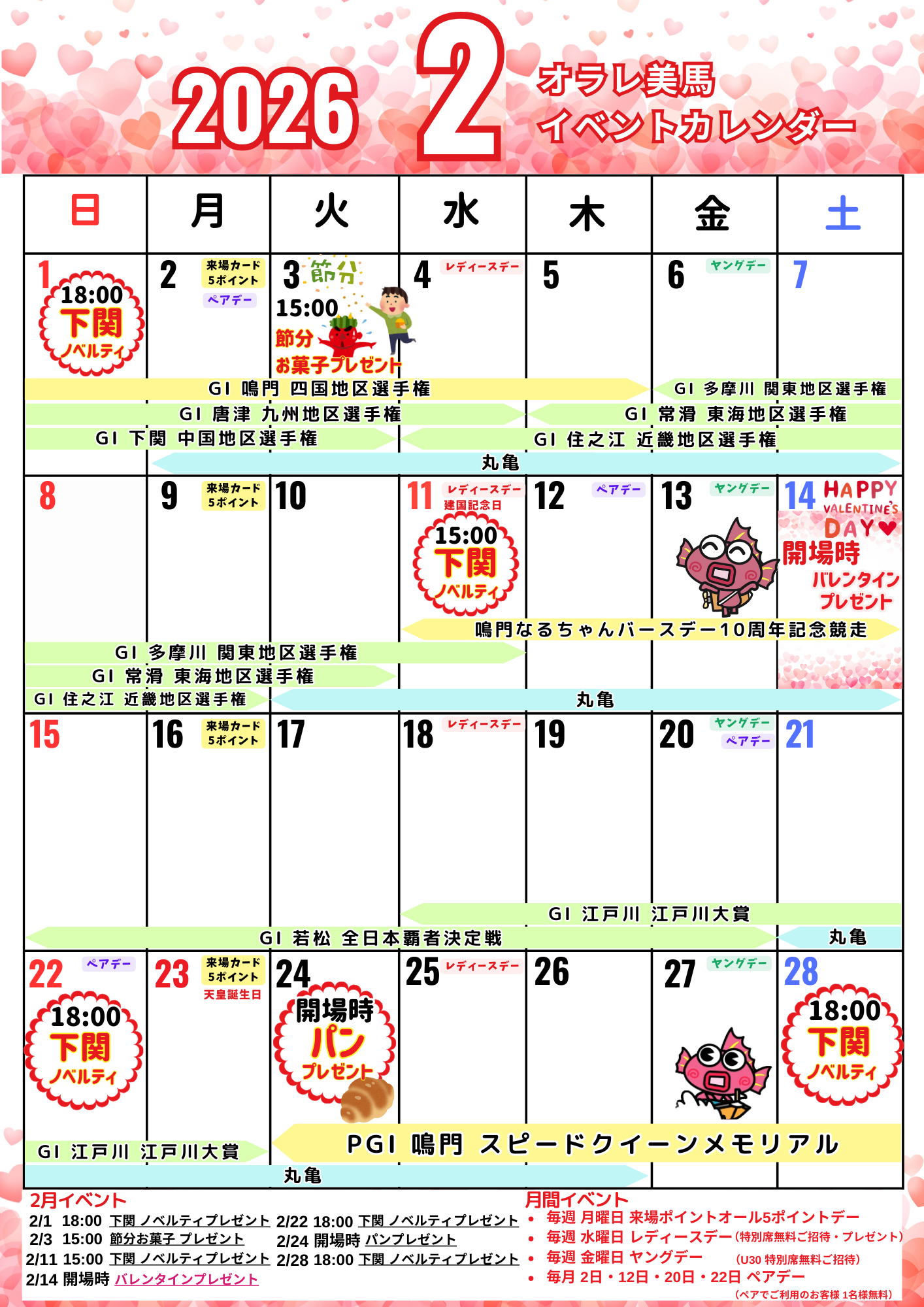 | 鳴門 | GⅠ 四国地区選手権 | なるちゃんバースデー10周年記念競走 | PGⅠ スピードクイーンメモリアル |