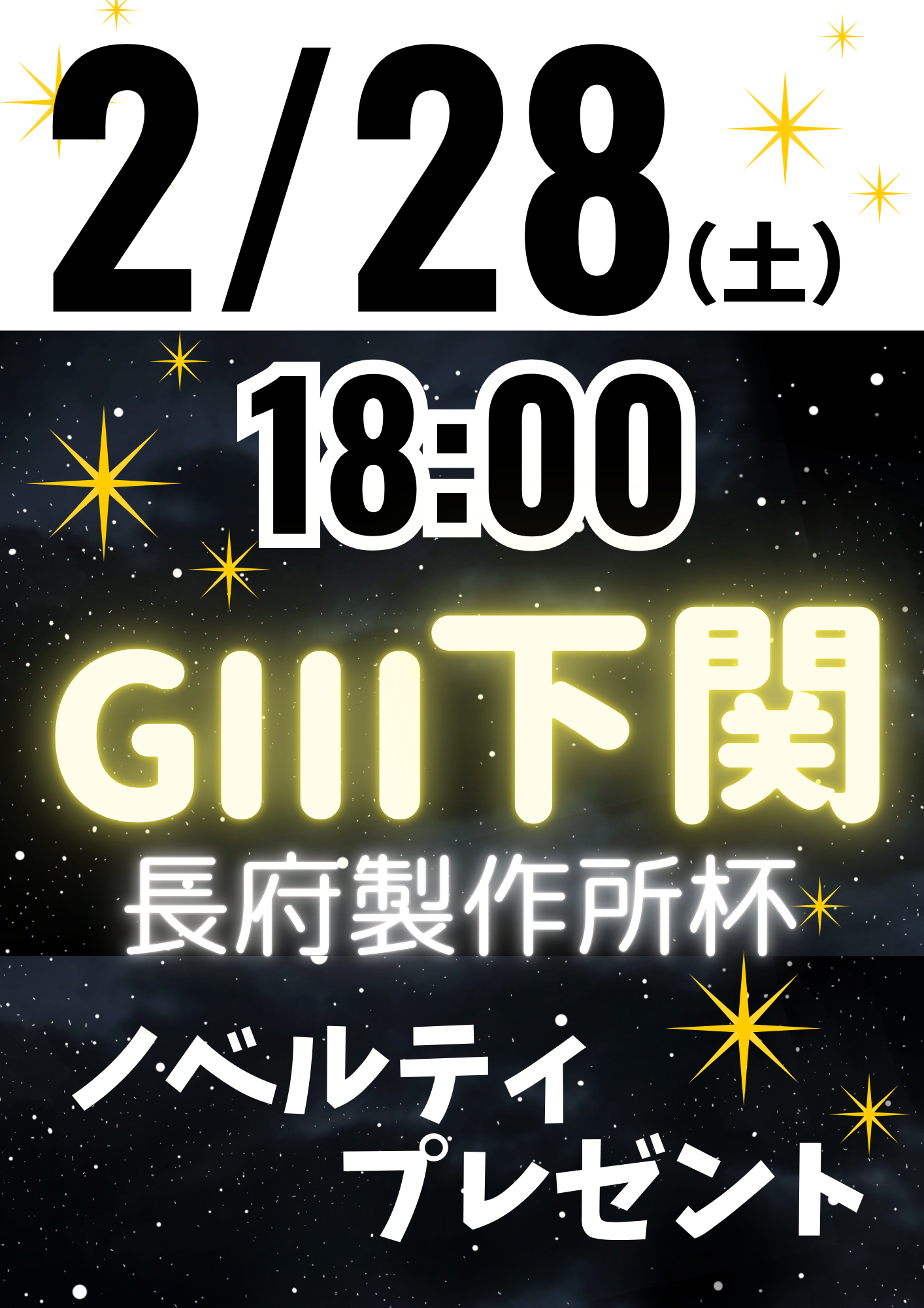 | 桐生 | 丸亀 | 若松 | 桐生 | 大村 | 桐生 | 下関GⅢ長府製作所杯 | ||||||||||||||||||||||