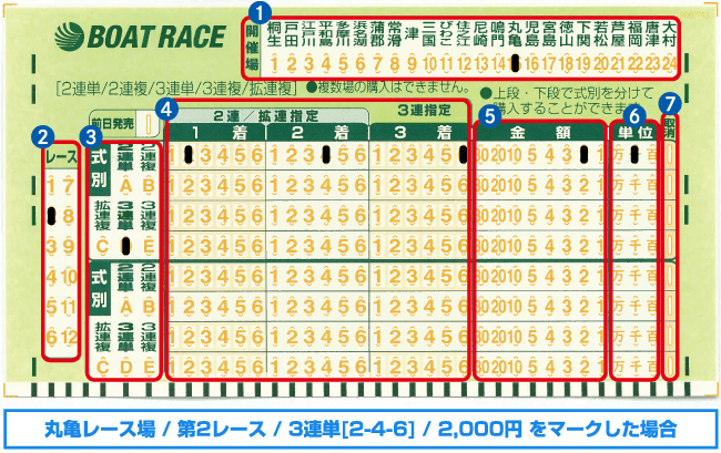 - 購入したい舟券の種類をマークする。