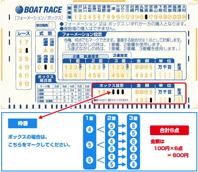 - ボックス投票枠に購入したい艇の番号をマークする。