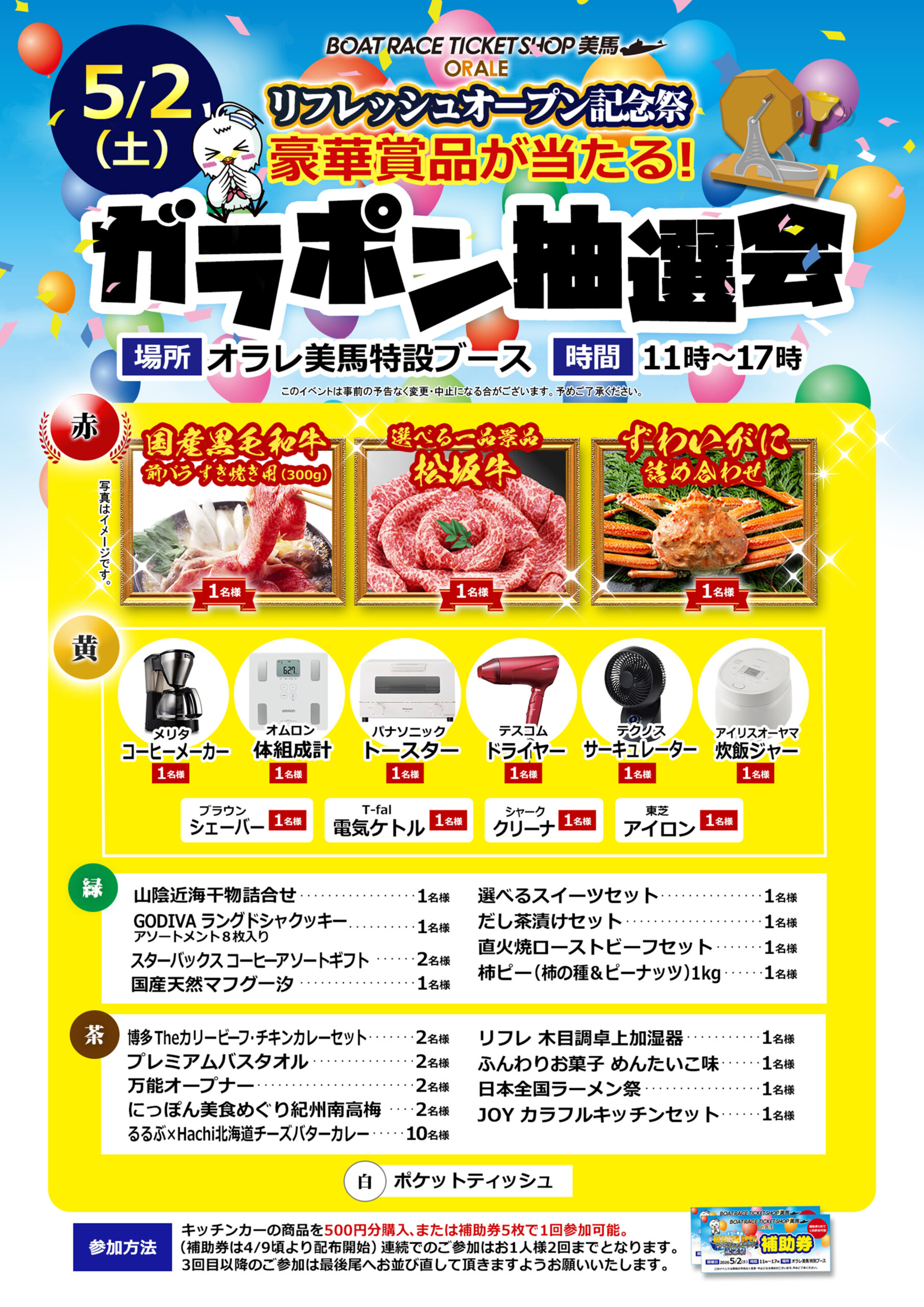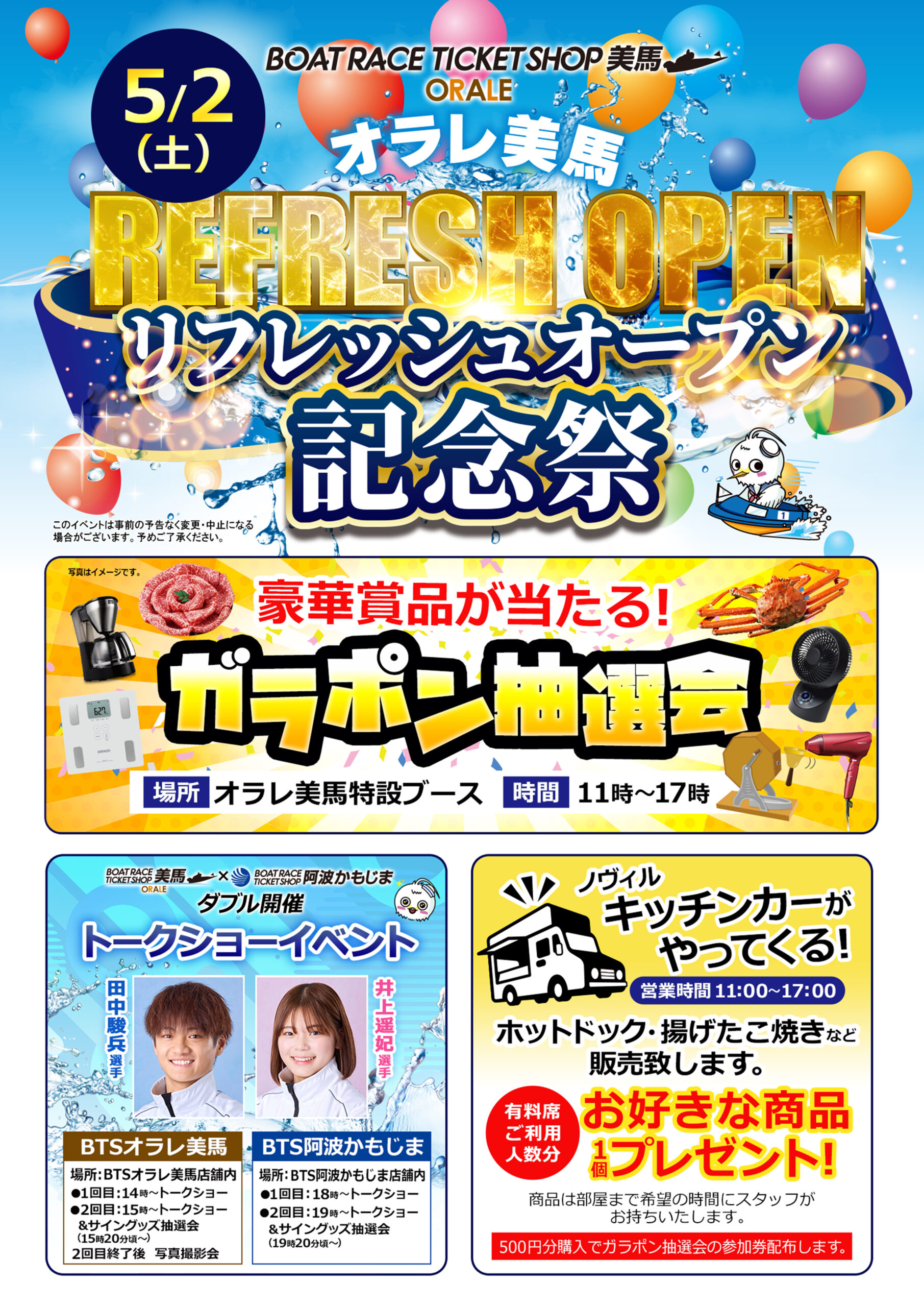 ボートレースチケットショップオラレ美馬では、さまざまなイベントを実施しております。